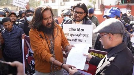 "दलित युवामाथि अत्याचारको आरोप: गृहमन्त्री रमेश लेखकमाथि कारवाहीको माग गर्दै कांग्रेस कार्यालय घेरा!" 2025 February 07